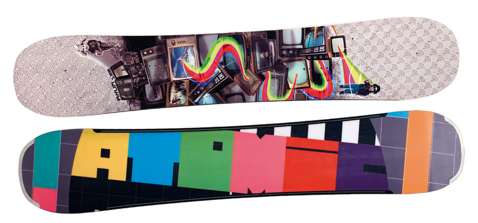 Snowboard graphics for the 2009/2010 season, including the „TV“ pro model of Tadej Valentan with an intense collage.