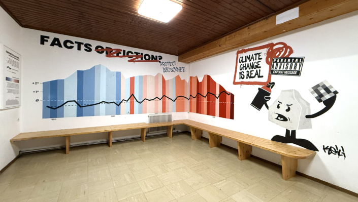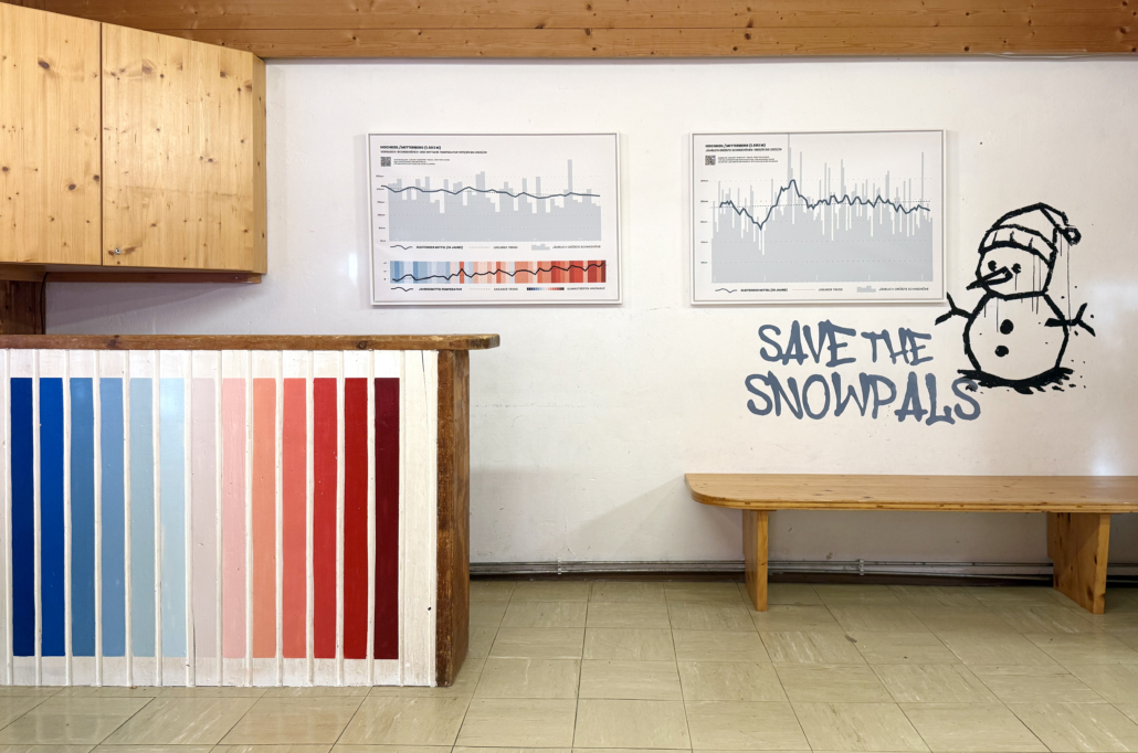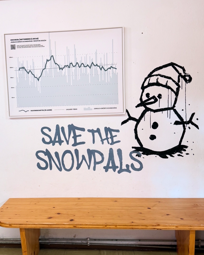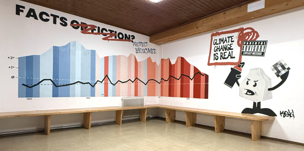 We created this mural at Hochkönig inside the Hochkeilhaus youth hostelto visualize global warming and how wintersports is affected.